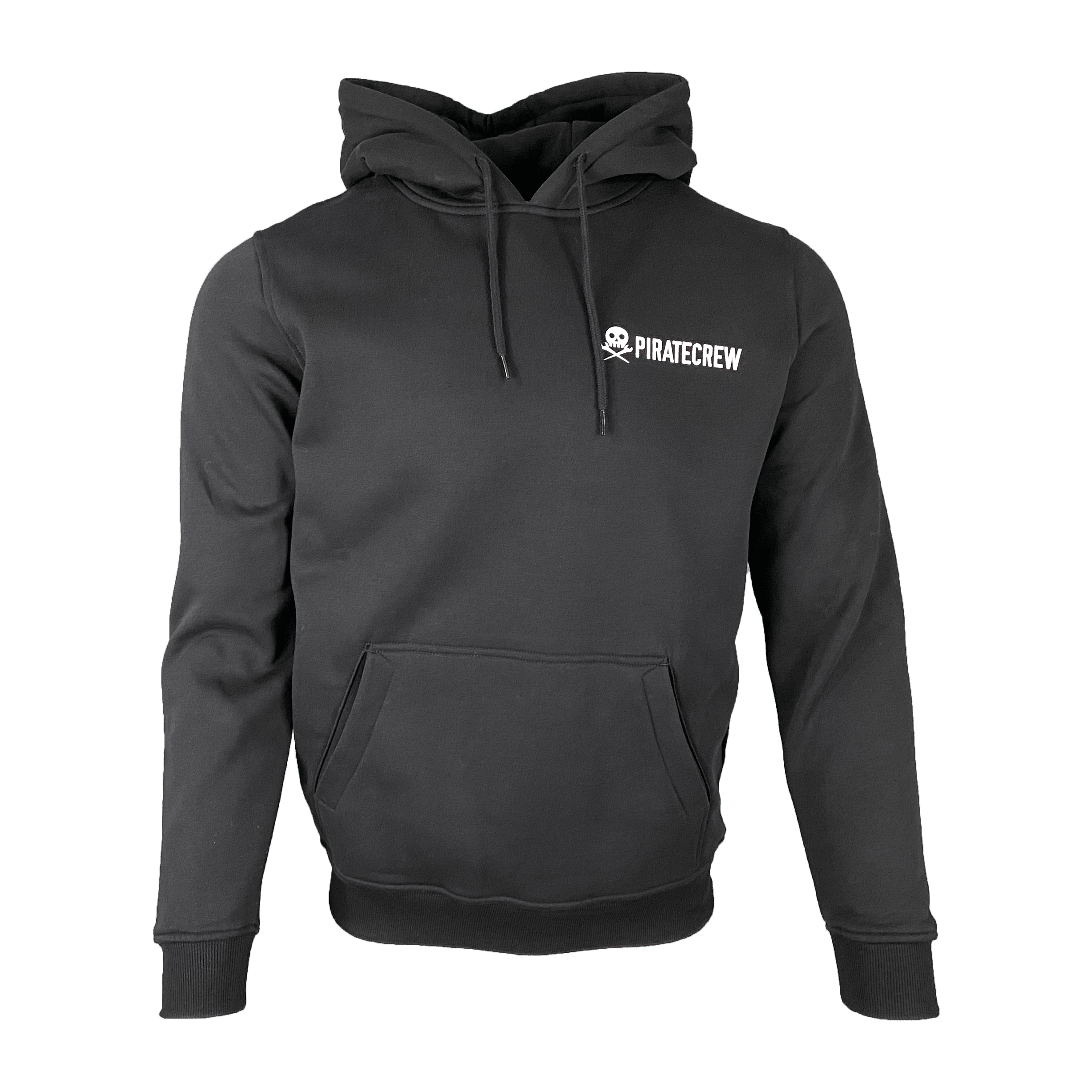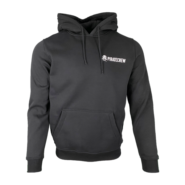 Black Pirate Crew Hooded Sweater. Front Kangaroo Pouch Inside Brushed Sweat.