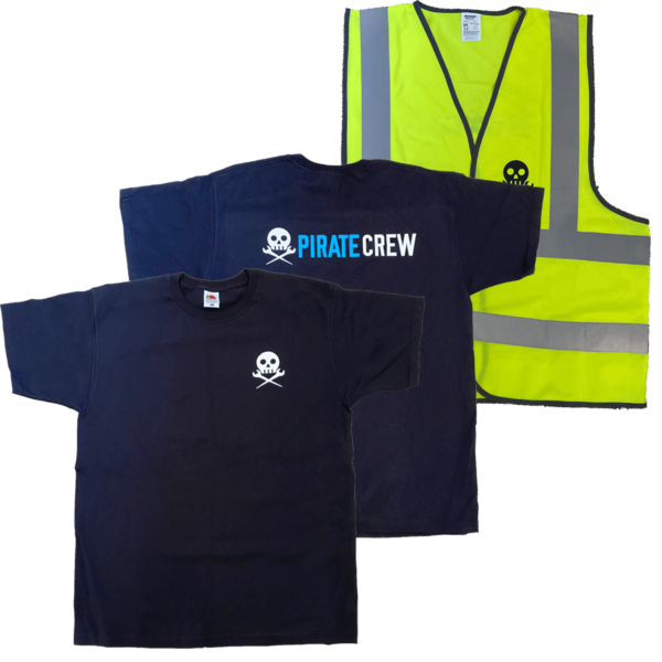 2 Pirate T-shirts – Fabric 100% Cotton. Ash: 99% Cotton, 1% Polyester. Heather Grey: 97% Cotton, 3% Polyester